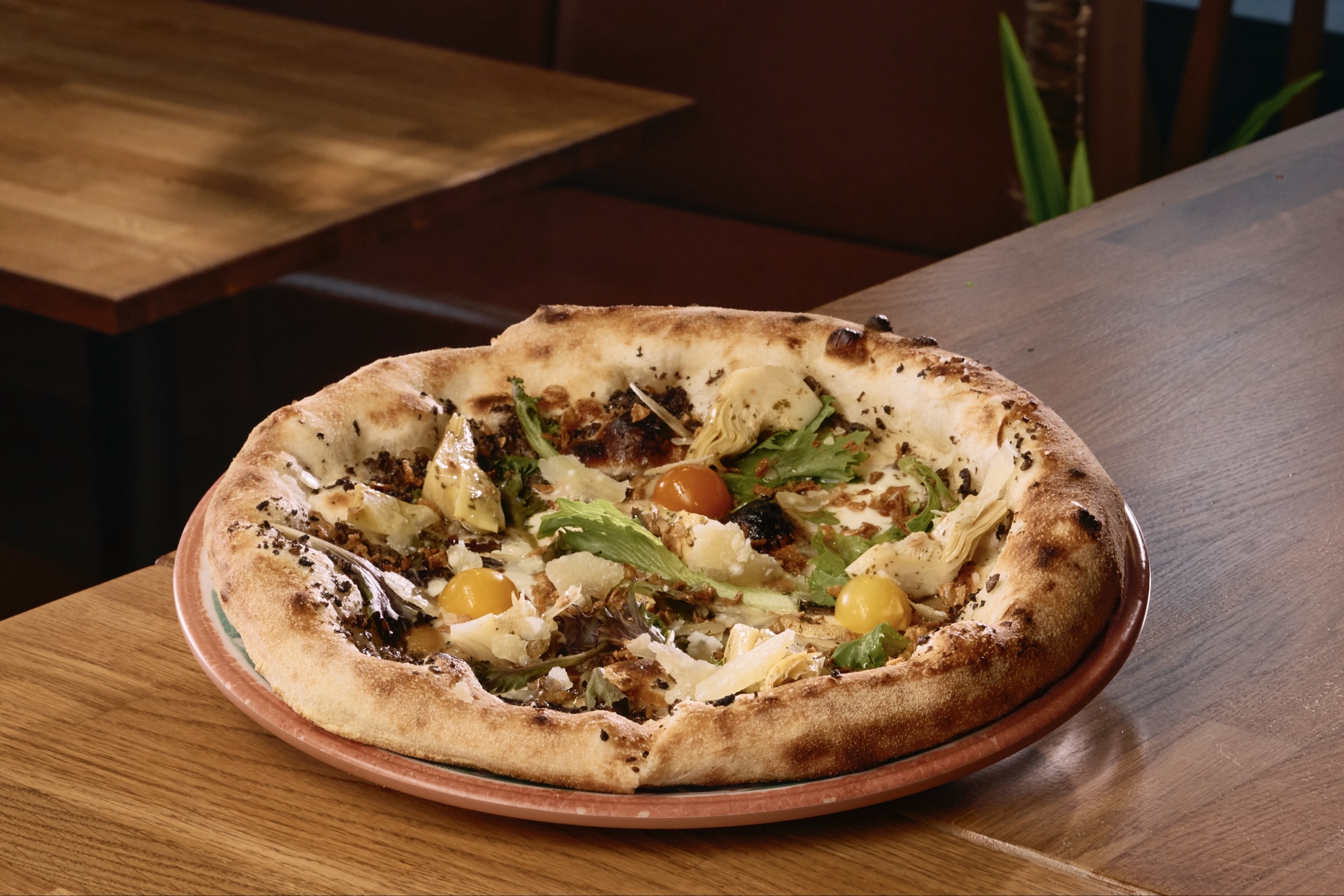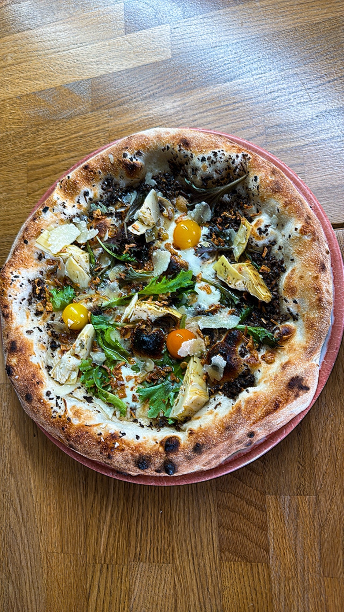 Ostasós, Rivin ostur, Truffle, Champignon, Parmigiano, Salat Mix, Artichoke