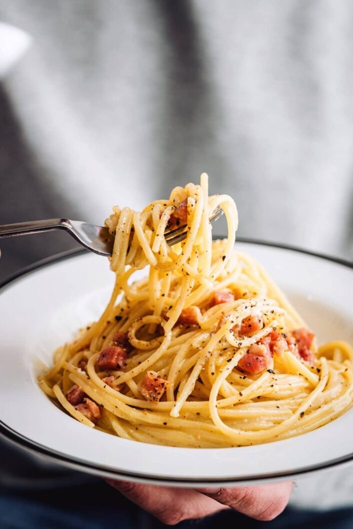 An Italian favourite featuring bacon lardons, tossed with spaghetti in a creamy sauce with Italian